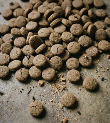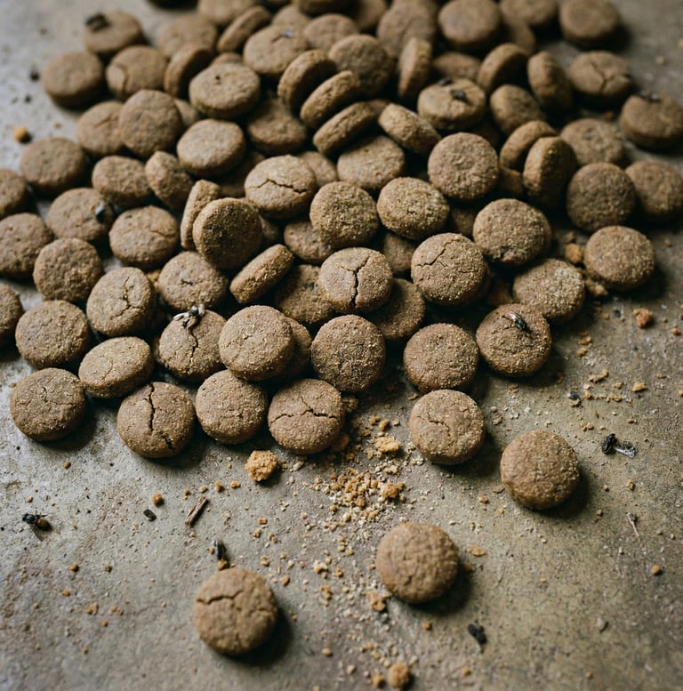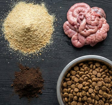A famosa "farinha de carne e ossos" pode incluir restos de frigorífico, tecidos doentes, penas e até animais doentes. Muitos ingredientes usados em rações não têm qualidade para consumo humano e passam por pouquíssimo controle — uma verdadeira roleta russa nutricional.